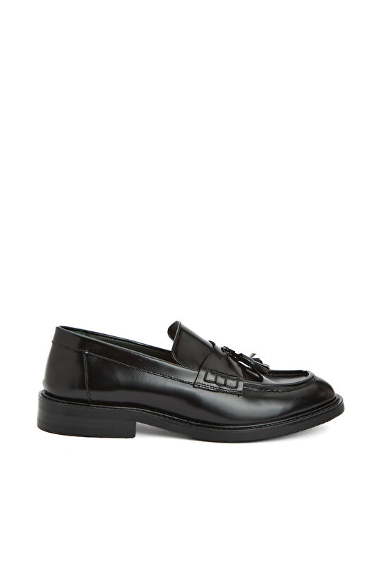 Siyah Püsküllü Erkek Deri Kösele Ayakkabı
