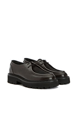 Kahverengi Logolu Erkek Deri Sneaker Ayakkabı