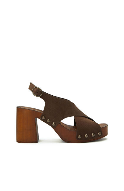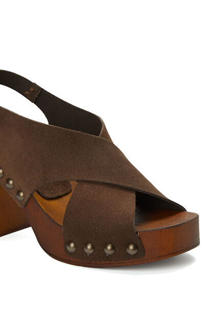Acı Kahve Platformlu Kadın Süet Sandalet