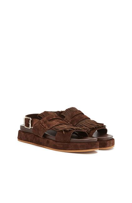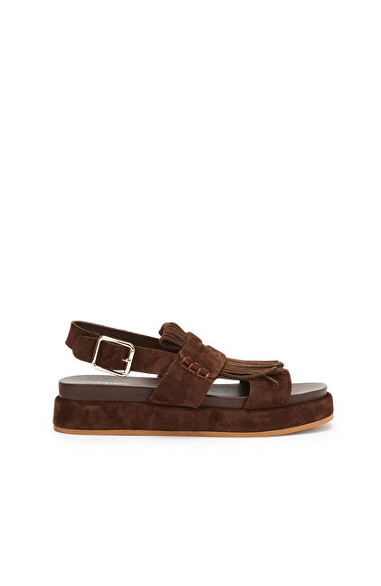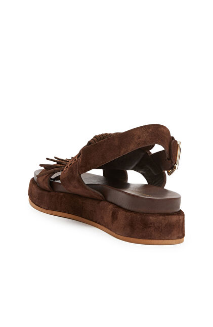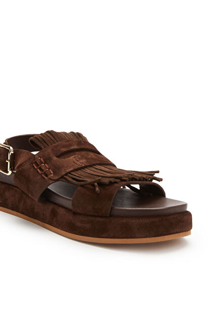 Acı Kahve Püskül Detaylı Kadın Süet Sandalet