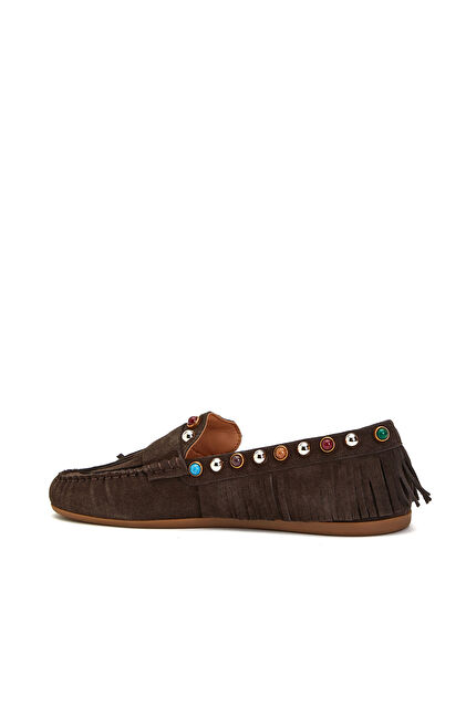 Acı Kahve Taşlı Püsküllü Kadın Süet Loafer