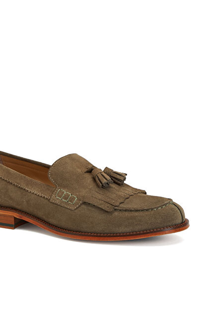 Açık Haki Püskül Detaylı Kadın Deri Loafer