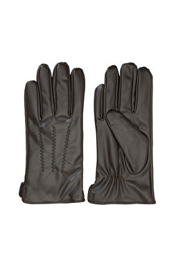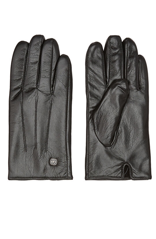 Siyah Erkek Deri Yün Karışımlı Eldiven