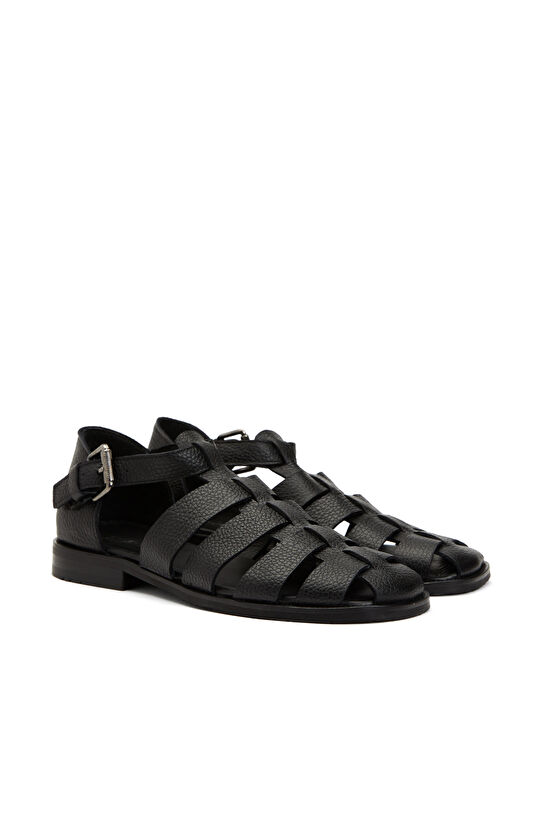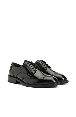 Siyah Zımbalı Kadın Deri Ayakkabı