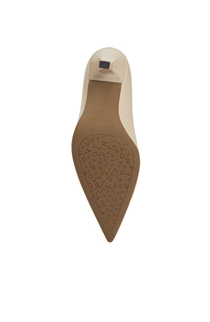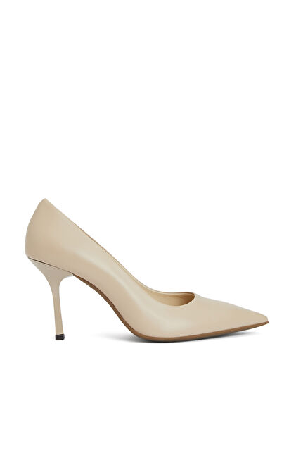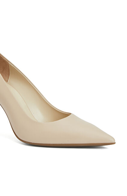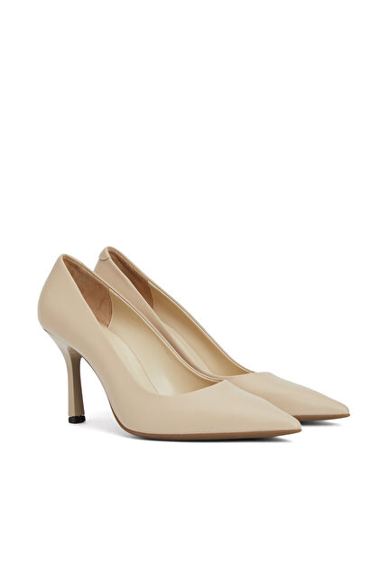 Bej Deri Topuklu Ayakkabı