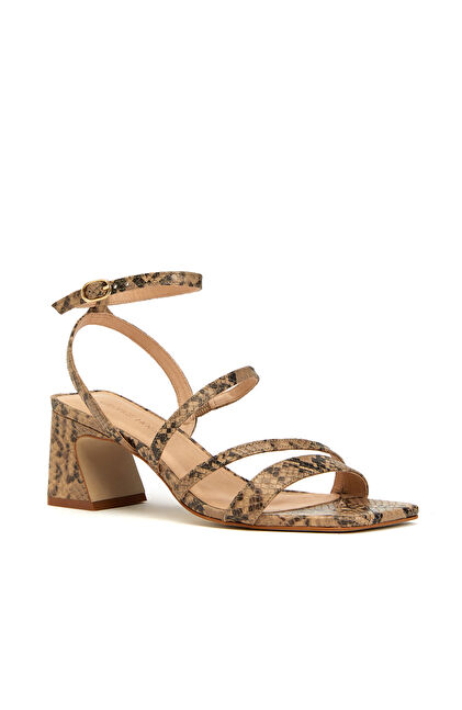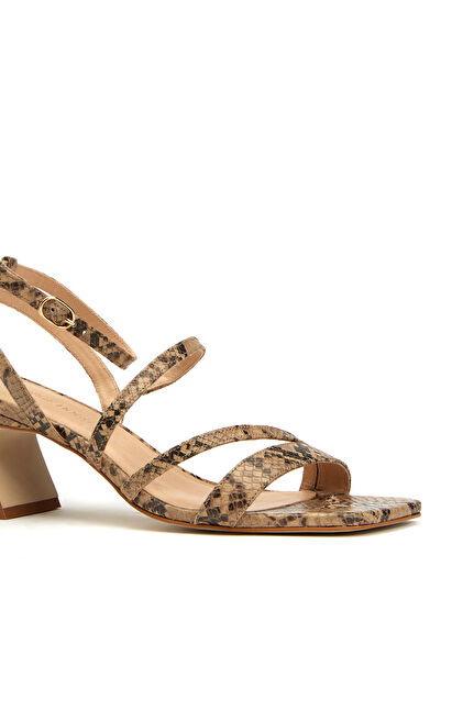 Küt Burun; Deri Sandalet; Kemer Kapatmalı; Desenli