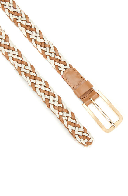 Bej Örgü Kadın Deri Kemer