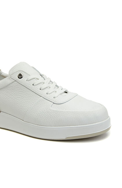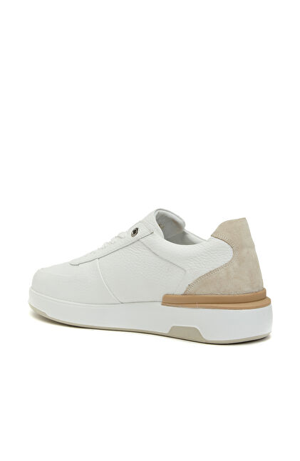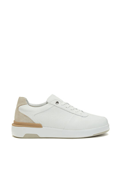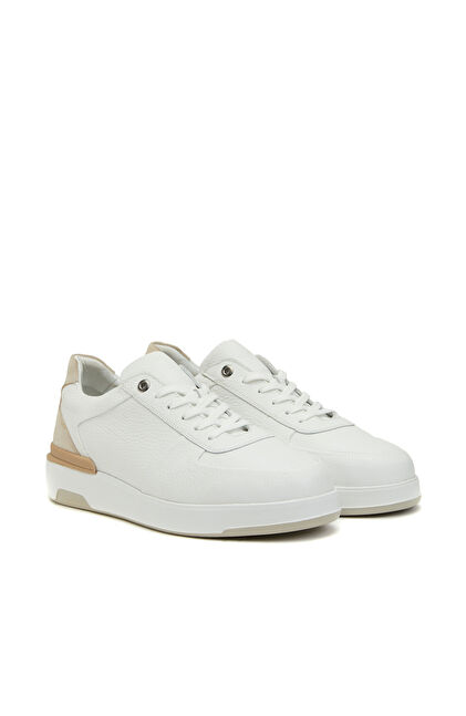 Beyaz Bağcıklı Erkek Deri Sneaker