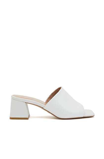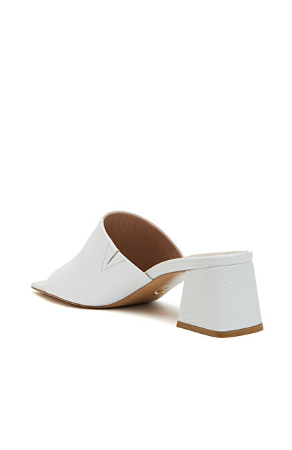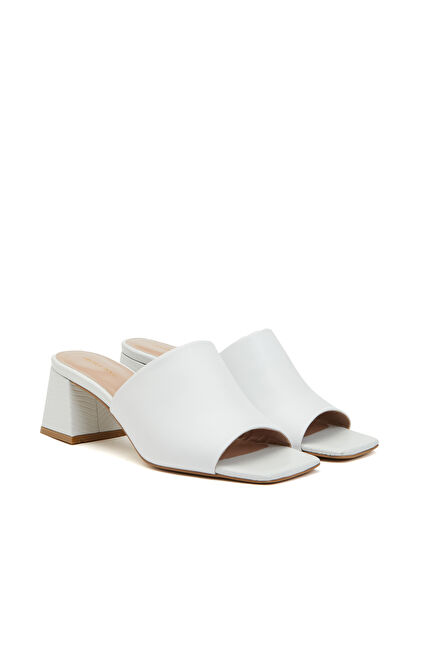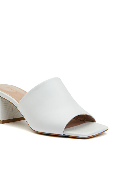 Beyaz Kadın Deri Terlik