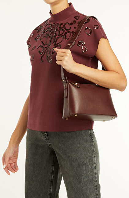 Bordo Kadın Deri Omuz Çantası
