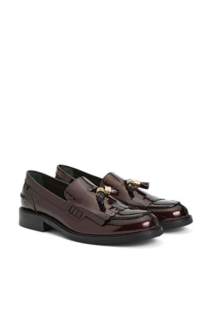 Tükenmek Üzere Bordo Kadın Püsküllü Rugan Deri Loafer