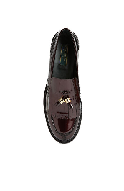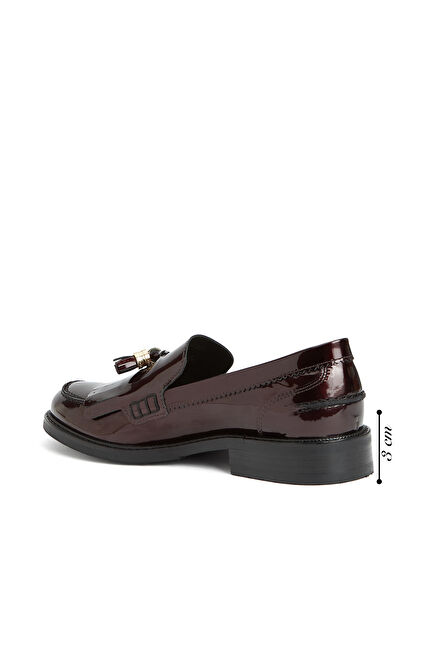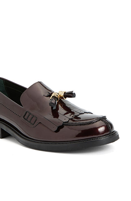 Bordo Kadın Püsküllü Rugan Deri Loafer