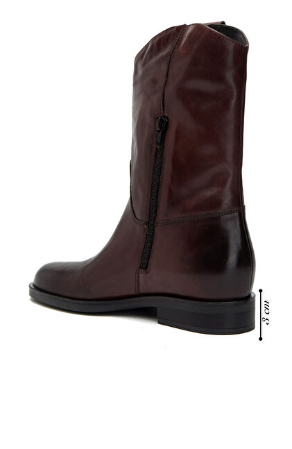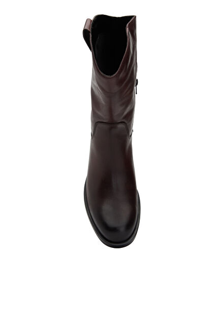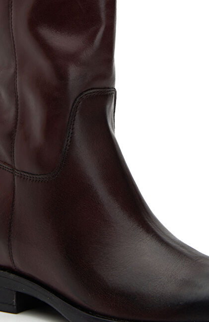 Bordo Kadın Western Tokalı Deri Bot