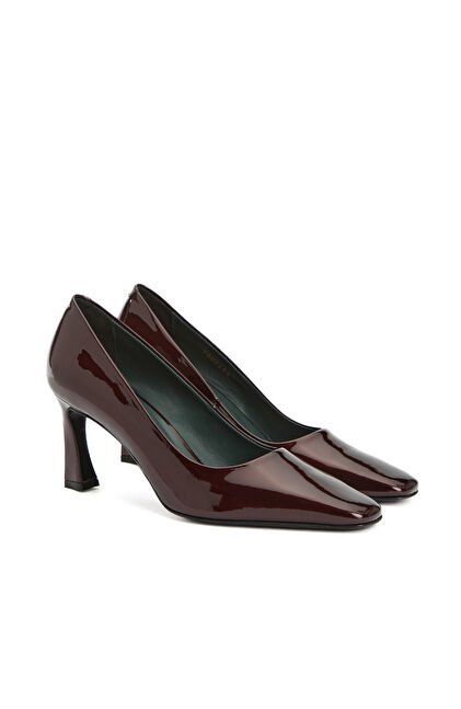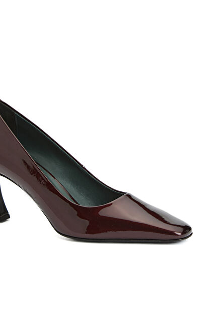 Bordo Rugan Deri Topuklu Ayakkabı