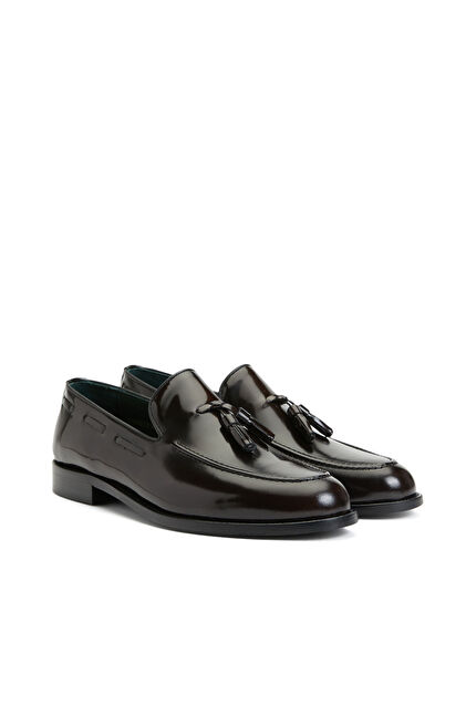 Bordo Rugan Püsküllü Erkek Deri Loafer