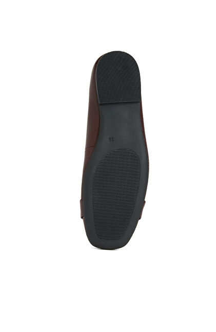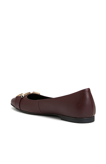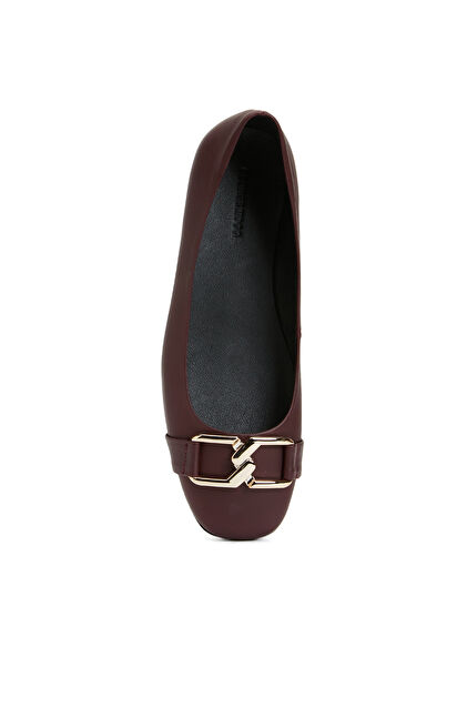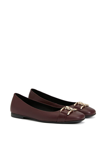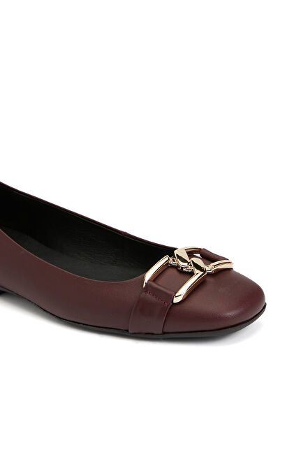 Bordo Zincir Aksesuarlı Deri Kadın Babet