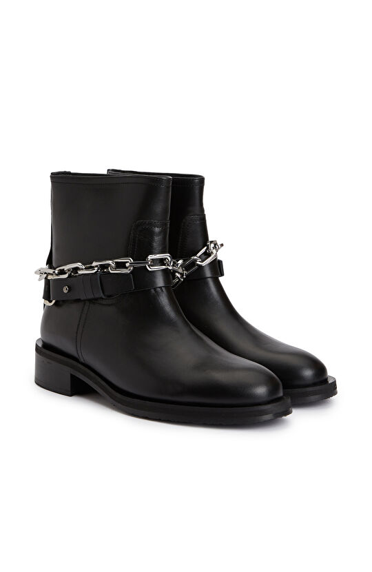 Siyah Zincir Detaylı Kadın Deri Bot