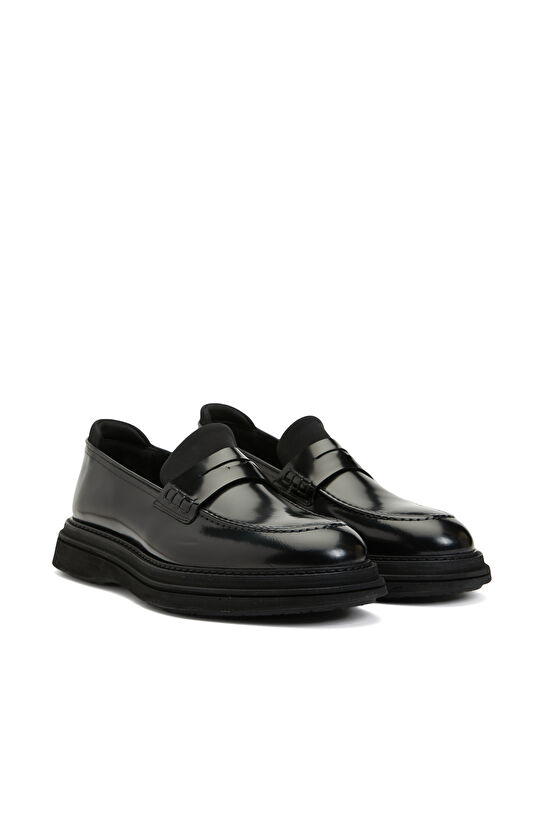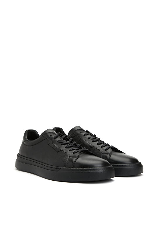Siyah Logolu Erkek Deri Sneaker Ayakkabı