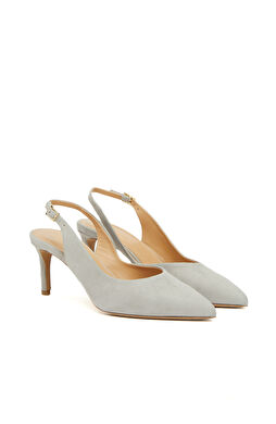 Açık Gri Kadın Süet Topuklu Ayakkabı