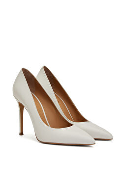 Kırık Beyaz Deri Stiletto