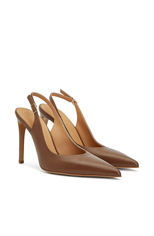 Kahverengi Deri Topuklu Ayakkabı