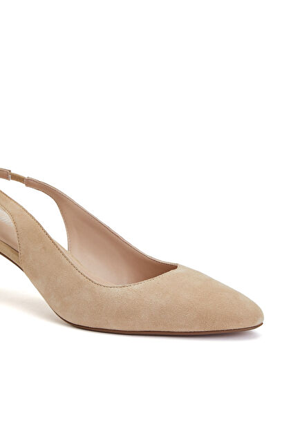 Beige Elastic Detailed Suede Heeled Shoes
