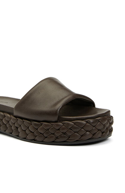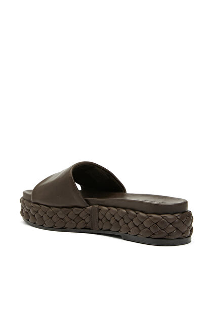 Bitter Brown Knitted Detailed Women's Leather Slippers