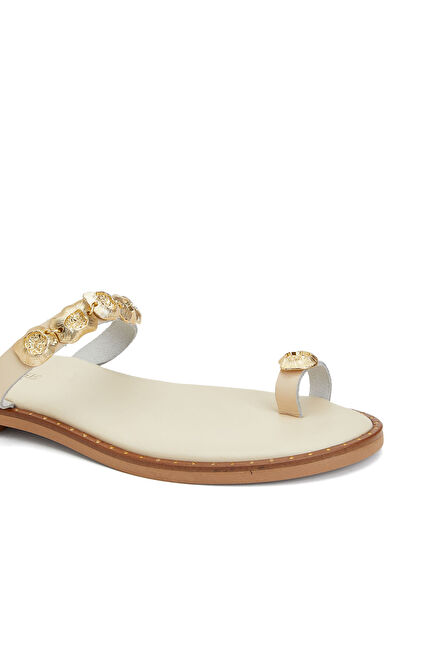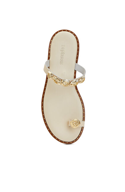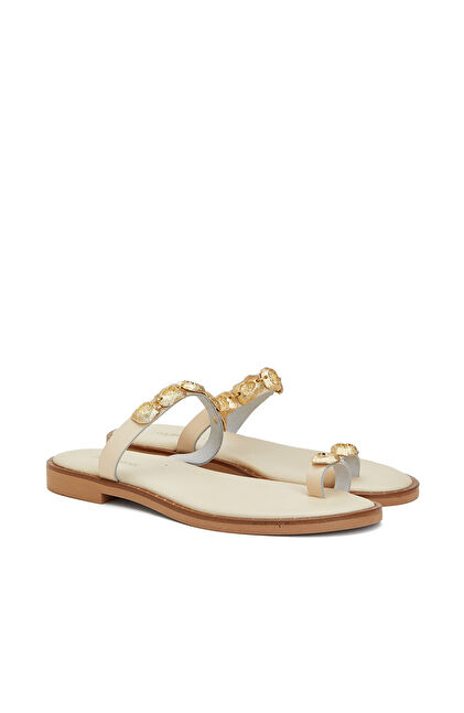 White Accessory Detailed Women's Slippers