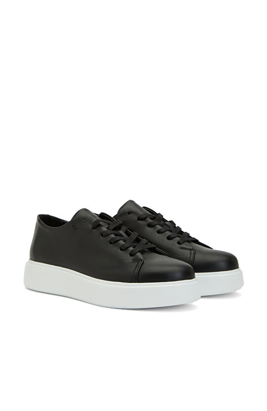 Siyah Erkek Bağcıklı Deri Sneaker