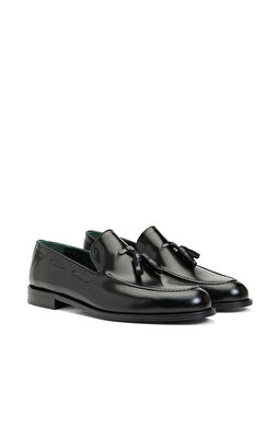 Siyah Püsküllü Erkek Deri Kösele Ayakkabı