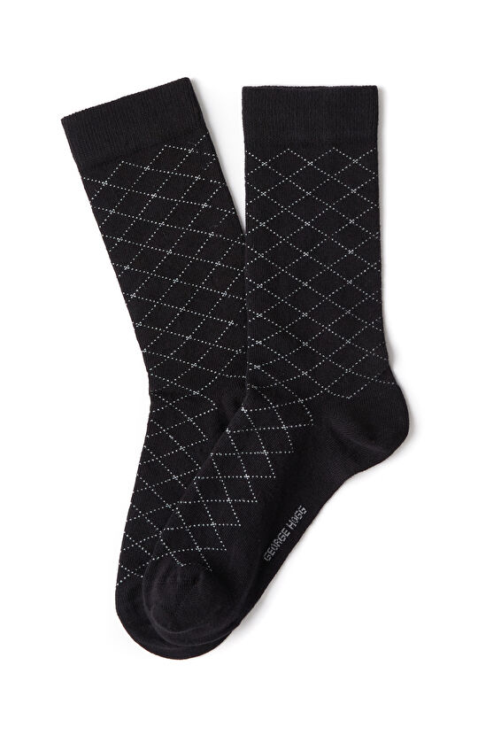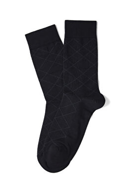 Siyah Ekose Desenli Erkek Soket Çorap