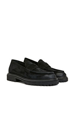 Siyah Yuvarlak Burun Erkek Deri Loafer