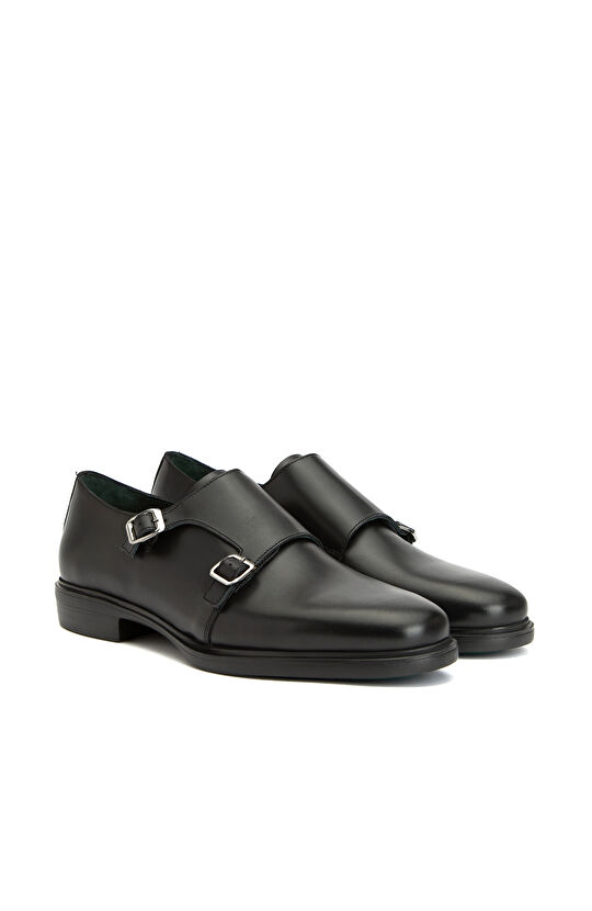 Siyah Tokalı Kadın Deri Topuklu Loafer