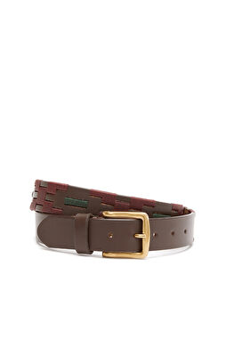 Kahverengi Kare Tokalı Erkek Örgü Deri Kemer