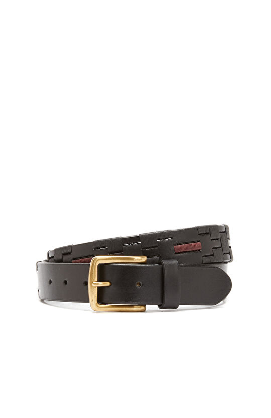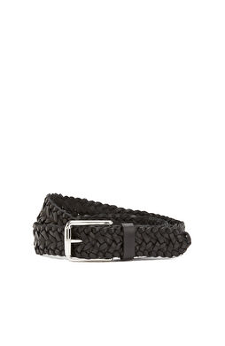 Siyah Örgü Dokulu Erkek Deri Kemer