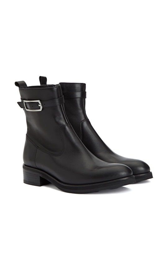 Siyah Kadın Topuklu Chelsea Deri Bot