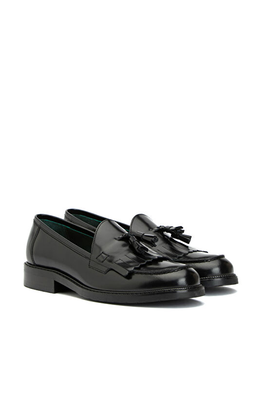 Siyah Kuşak Detaylı Kadın Deri Loafer