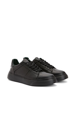 Siyah Nakış Detaylı Kadın Deri Sneaker