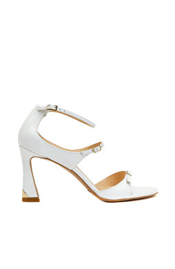 Beyaz Deri Topuklu Ayakkabı