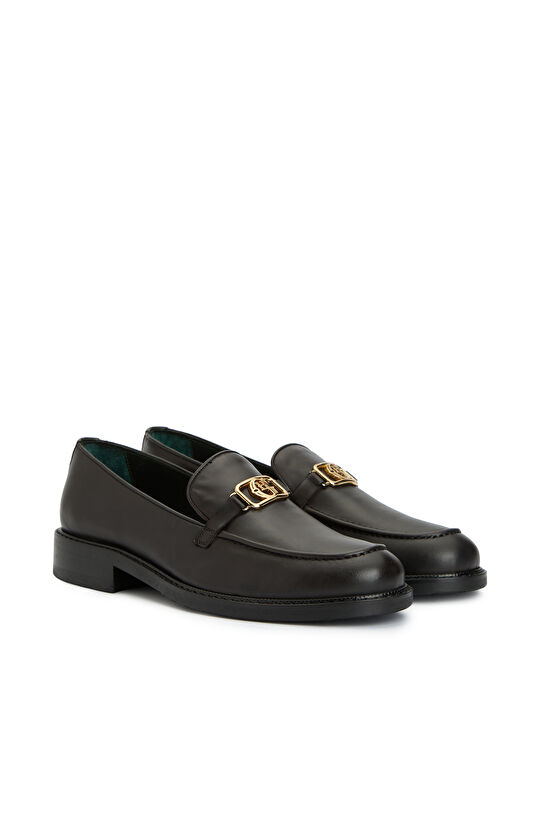 Kahverengi Tokalı Kadın Deri Loafer