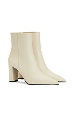 Kırık Beyaz Kadın Fermuarlı Deri Bot
