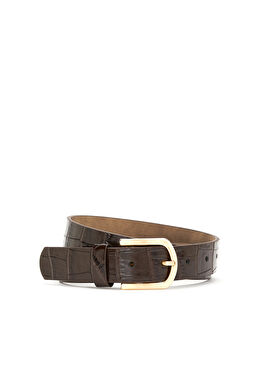 Kahverengi Kroko Desenli Kadın Deri Kemer