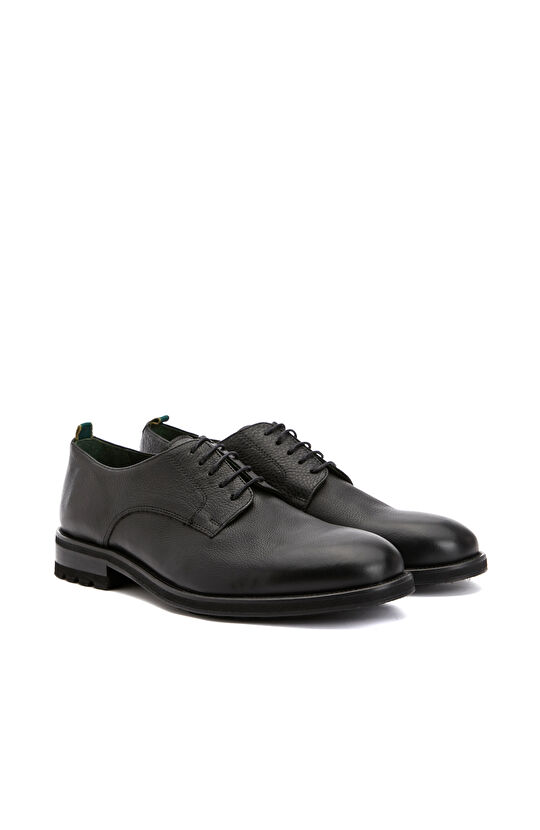Siyah Logolu Erkek Deri Sneaker Ayakkabı