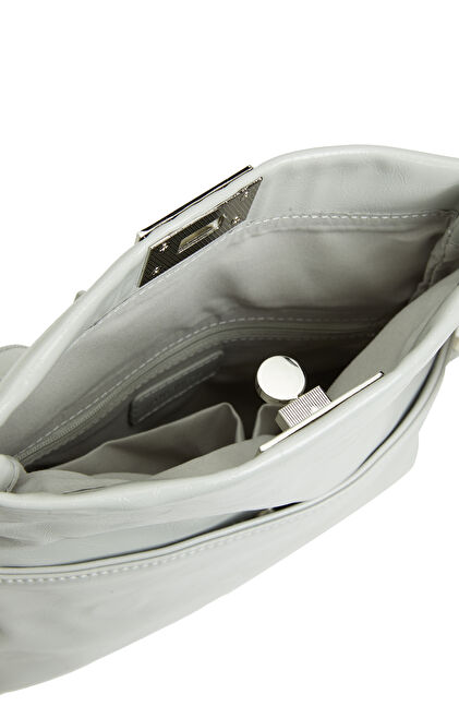 Gri Kilit Detaylı Kadın Deri Çanta