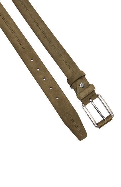 Haki Dikiş Detaylı Erkek Süet Kemer Haki Dikiş Detaylı Erkek Süet Kemer