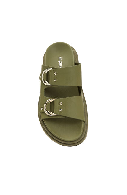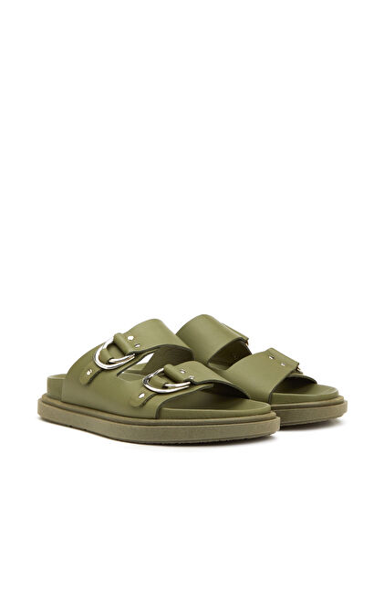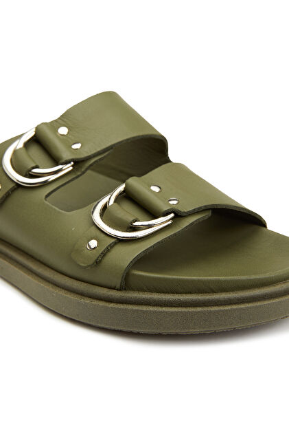 Haki Kadın Deri Terlik