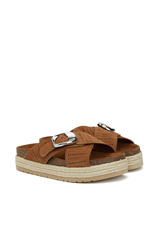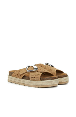 Gün boyu konfor için düz tabanlı süet terlikleri keten pantolon ve basic bluzlarla rahatça tamamlayabilirsiniz.