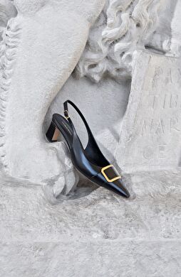 Siyah Deri Topuklu Ayakkabı