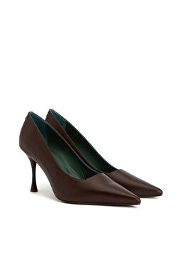 Kahverengi Kadın Deri Topuklu Ayakkabı