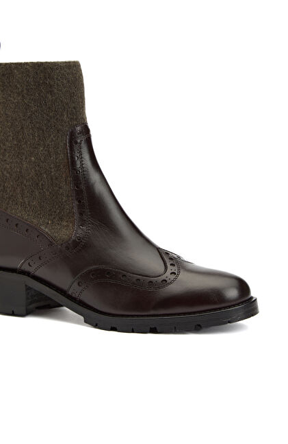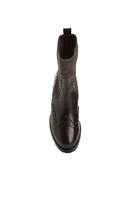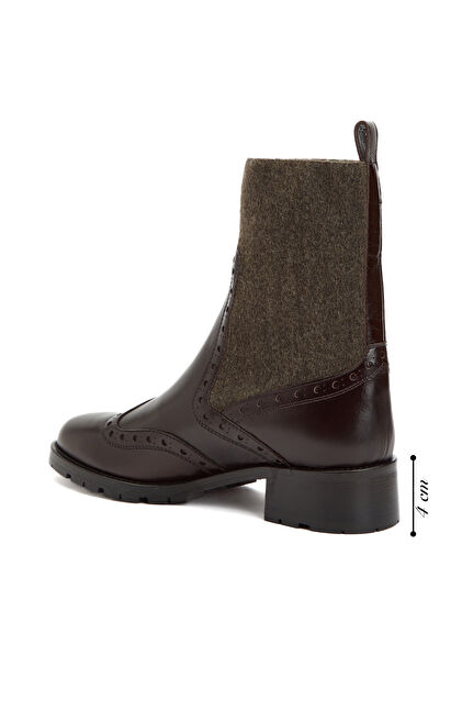 Bağcıksız; Triko Detaylı; Chelsea Deri Bot;Orta Ökçe: 4 cm,